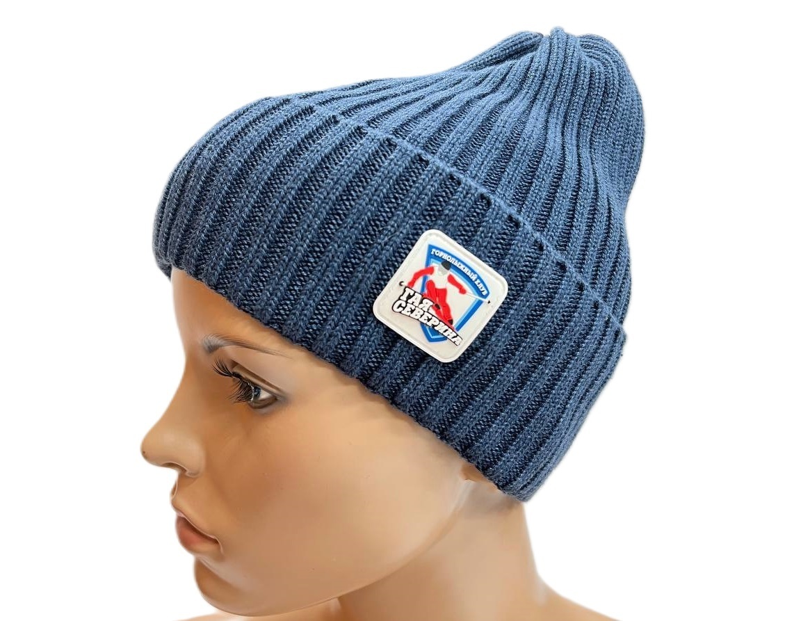Шапка Клубная вязаная хлопок (джинсовый)